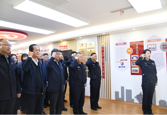 在麦岛派出所指导员张娟的带领下,全体党员面对党旗重温入党誓词,在庄严的誓词中,再次坚定我们的信仰和初心,共同为党的事业奋斗终身!