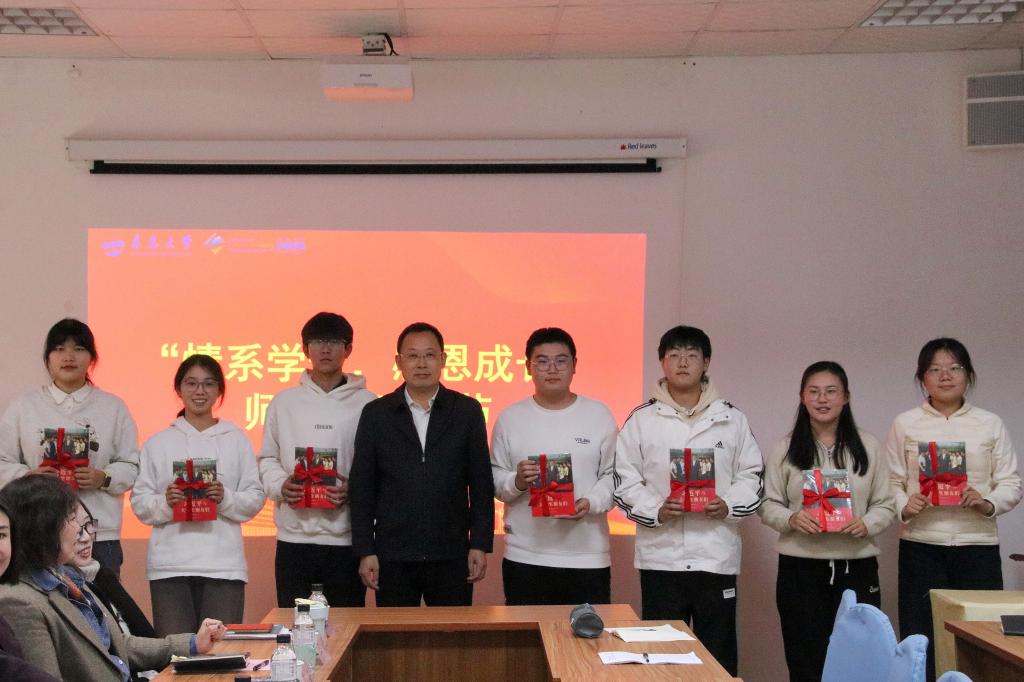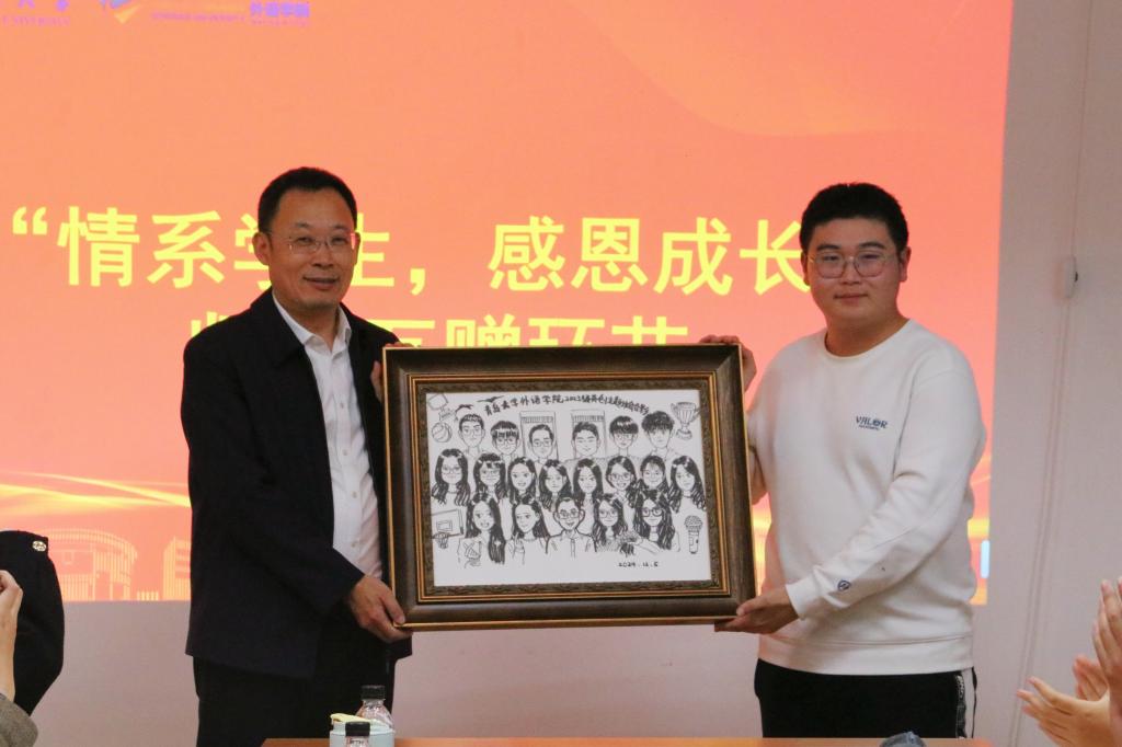 院长卞建华向刘恩贤颁发“德育导师”聘书。在“情系学生,感恩成长”师生互赠环节,刘恩贤为英创班赠送书籍《习近平与大学生朋友们》,并鼓励同学们多读书,多实践。学生代表张珈恺代表英创班全体同学向刘校长赠送班级手绘作品。